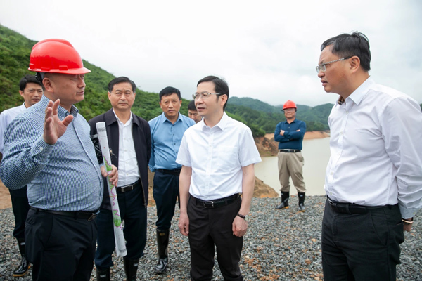 2021年5月21日上午,鷹潭市委書記黃喜忠深入由我集團(tuán)承建的貴溪市塘灣水庫(kù)除險(xiǎn)加固工程進(jìn)行實(shí)地調(diào)研,指導(dǎo)在建工程防汛備汛。塘灣水庫(kù)壩址以上控制流域面積22.6平方公里,總庫(kù)容1321萬(wàn)立方米,灌溉面積1.43萬(wàn)畝,電站裝機(jī)容量320千瓦。塘灣水庫(kù)除險(xiǎn)加固工程于2020年11月開工建設(shè),目前在各參建單位共同努力下,按計(jì)劃穩(wěn)步推進(jìn),主體工程有望在合同工期內(nèi)完工。黃喜忠登上水庫(kù)大壩,實(shí)地查看了項(xiàng)目建設(shè)進(jìn)展情況,并對(duì)水庫(kù)加固工程建設(shè)工作提出明確要求。他指出,要在確保質(zhì)量和安全的前提下,加快推進(jìn)項(xiàng)目建設(shè),確保早日建成見效。黃書記強(qiáng)調(diào),各參見單位在工作中要堅(jiān)持人民至上、生命至上,切實(shí)把確保人民生命安全放在第一位落實(shí)。