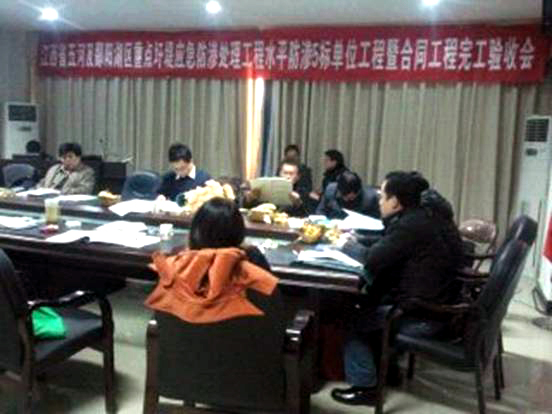2012年1月17日,江西省五河及鄱陽湖區(qū)重點圩堤應(yīng)急防滲工程建設(shè)項目部在鄱陽縣主持召開了水平防滲5標單位工程暨合同工程完工驗收會,并順利通過了單位工程暨合同工程完工驗收。公司工程部彭和平副經(jīng)理參加了驗收會。