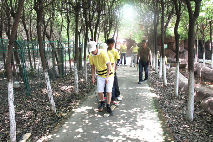 乘車到達農(nóng)莊后,活動的第一項內(nèi)容是隊列訓(xùn)練,全體人員統(tǒng)一著裝,聽從教練口令,立正、稍息、向右看齊,動作一致,隊列整齊劃一,個個精神抖擻。隊列訓(xùn)練結(jié)束后,是闖關(guān)奪冠比賽,79人被分為5個小分隊,每隊成員積極發(fā)揮聰明才智,隊長集思廣益,為本隊征集隊名和Logo,并在隊旗上描繪出具有本隊特色的動員口號。每支小分隊發(fā)有一張地圖,起點不同,但都需闖過五大難關(guān),每一關(guān)都規(guī)定隊員必須先完成指定任務(wù),再回答十個問題,用時最少,回答問題準(zhǔn)確率最高的一隊為勝。這五大難關(guān)分別是:祥龍獻寶,瑞龍戲珠,猛龍吐珠,潛龍轟天,碧水龍舟。比賽過程中,青年員工們熱情高漲,目標(biāo)明確,充分發(fā)揮團隊協(xié)作精神,爭分奪秒完成各項任務(wù)。這是屬于我們青年人的舞臺,恣意揮灑著青春,布滿汗水的笑臉在陽光下熠熠生輝。經(jīng)過緊張激烈的比拼后,最終第一小分隊奪得最后的冠軍,歡呼祝賀聲響成一片。