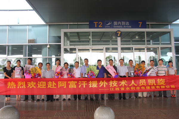 6月1日下午4時(shí),公司首批援建阿富汗帕爾旺水利項(xiàng)目增項(xiàng)工程技術(shù)人員由阿富汗轉(zhuǎn)機(jī)烏魯木齊后,飛抵南昌昌北機(jī)場。董事長、總經(jīng)理王元旦、黨委副書記王延軍、副總經(jīng)理黃鄭民及部分職能部門員工前往機(jī)場迎接。
