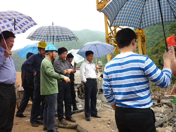 廖瑞釗副廳長在項目施工現(xiàn)場檢查施工生產(chǎn)情況,聽取了項目管理人員關(guān)于施工進(jìn)度及質(zhì)量安全等工作匯報。當(dāng)他聽到泰和縣洞口水庫除險加固工程目前進(jìn)展比較順利,主體工程已完成70%左右,計劃于2013年8月底項目全面完工時,廖瑞釗副廳長對工程的進(jìn)展表示滿意,他要求參建各方再接再勵完成好下一步工作,全力配合,確保工程質(zhì)量和安全。