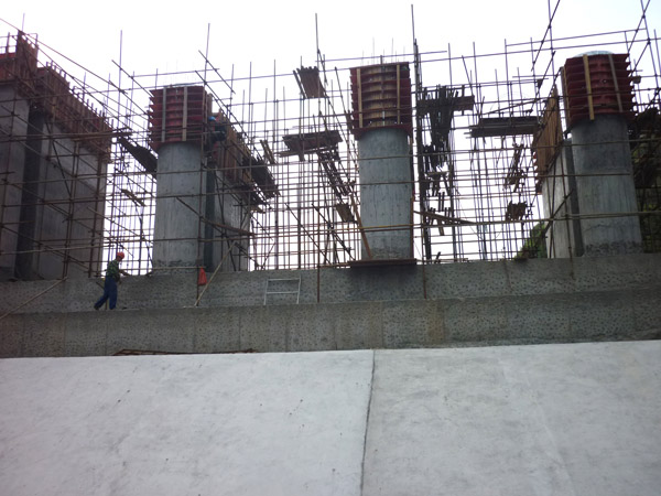 正在施工中的溢洪道閘墩