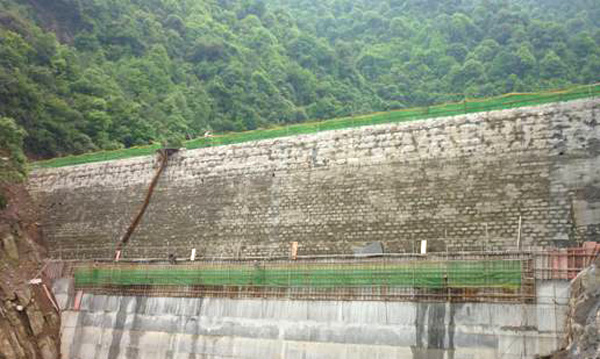 正在施工中的大壩防滲面板
