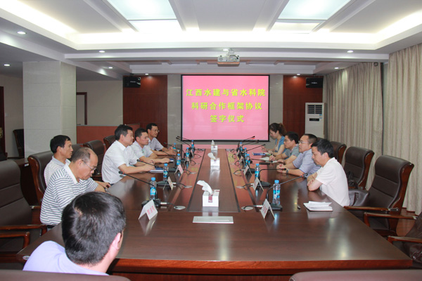 2013年9月3日,江西省水利水電建設(shè)有限公司與江西水利科學(xué)研究院簽訂了科研合作框架協(xié)議。公司董事長兼總經(jīng)理王元旦、省水科院院長方少文代表雙方單位在科研合作框架協(xié)議書上簽字。公司總經(jīng)濟師孫八根、紀委書記王延軍、副總經(jīng)理徐洪良,省水科院黨委副書記李洪任等出席簽字儀式。