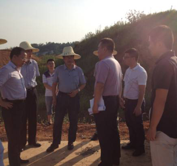 2015年07月13日下午,江西省水利廳副廳長(zhǎng)廖瑞釗、五河辦黃國(guó)金等領(lǐng)導(dǎo)一行來(lái)到我公司承建的江西省五河治理贛州市城市防洪工程社背堤現(xiàn)場(chǎng)視察指導(dǎo)工作。