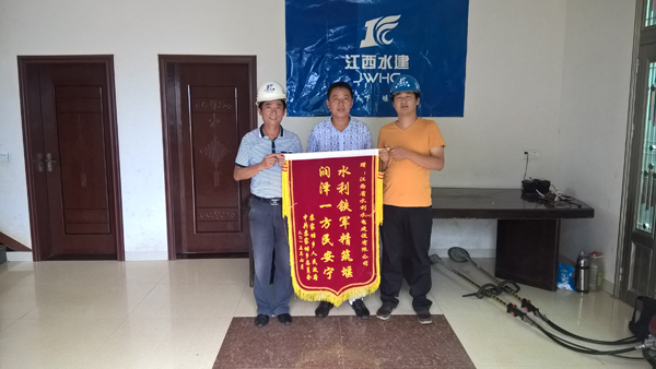 2015年7月24日,在一陣熱烈的鞭炮聲中,星子縣蘇家垱鄉(xiāng)人民政府丁鄉(xiāng)長等一行,托舉著一面寫有“水利鐵軍精筑堰,潤澤一方民安寧”的錦旗送到了江西水建星子縣蛟塘鎮(zhèn)防洪工程施工項目部。