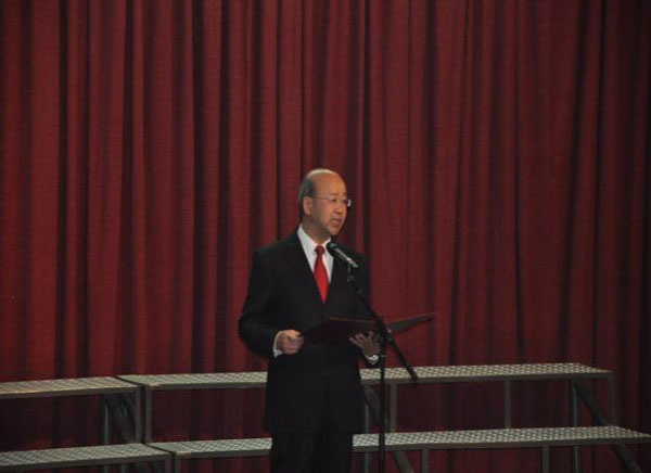 中國駐肯尼亞大使劉顯法在合唱比賽前發(fā)表講話,祝賀中國人民抗日戰(zhàn)爭暨反法西斯戰(zhàn)爭勝利70周年,并向全體中資員工致以節(jié)日的問候,及對各中資公司參賽人員表示誠摯的祝愿。隨后,合唱比賽在紅色經(jīng)典歌曲——《游擊隊之歌》中拉開了序幕。