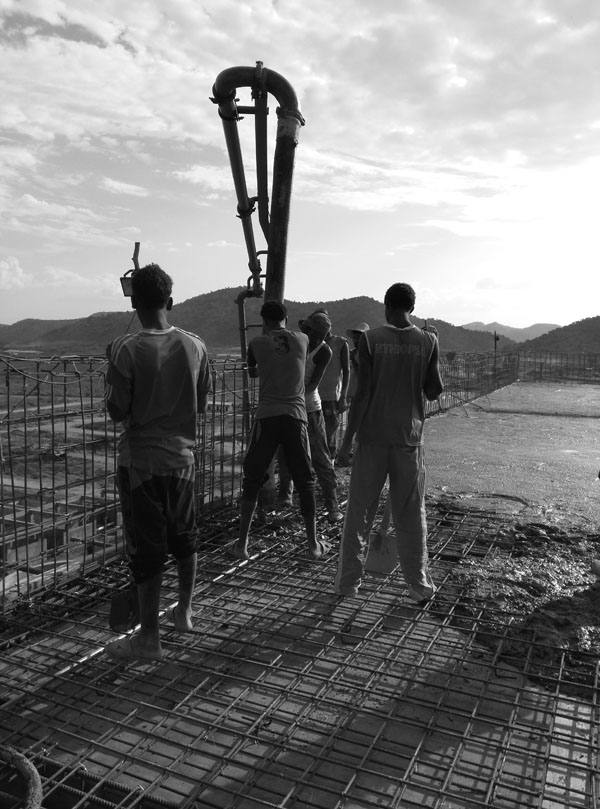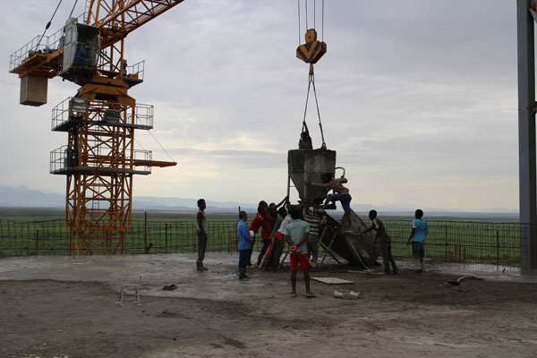 該項(xiàng)目位于接近赤道的埃塞俄比亞南部,素以氣候炎熱而著稱,施工條件頗為艱苦。施工過(guò)程中,項(xiàng)目部成員每天早出晚歸,常常一站就是一天,二十四小時(shí)連班也是家常便飯。在主廠房接近封頂?shù)年P(guān)鍵時(shí)刻,項(xiàng)目部全體員工有的夜里跟隨混凝土罐車執(zhí)行押車任務(wù),有的深夜依然堅(jiān)持在澆搗一線指揮作業(yè),連續(xù)奮戰(zhàn)數(shù)日,終于完成封頂大任。