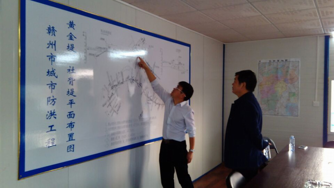 2015年11月20日下午,公司董事長(zhǎng)王元旦一行到贛州城防項(xiàng)目檢查指導(dǎo)工作。