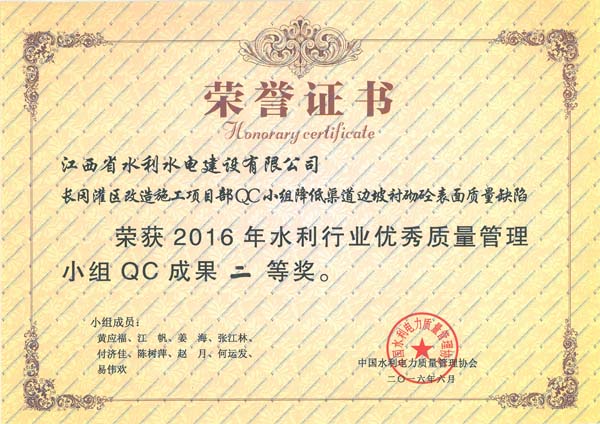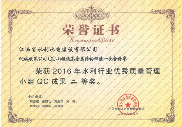 2016年6月20日至24日,中國水利電力質量管理協(xié)會水利分會在安徽省安慶市,舉辦了2016年水利行業(yè)優(yōu)秀質量管理小組成果發(fā)表會,并在本次發(fā)表會上發(fā)布了156項QC成果。中國水利電力質量管理協(xié)會水利分會組織評審專家,對發(fā)表的QC成果進行了現(xiàn)場評審,對經評審獲得一、二等獎的單位進行了表彰。本次成果發(fā)表會上,我公司共有3項QC成果獲一等獎,兩項QC成果獲二等獎,成績較往年有較大幅度提高。