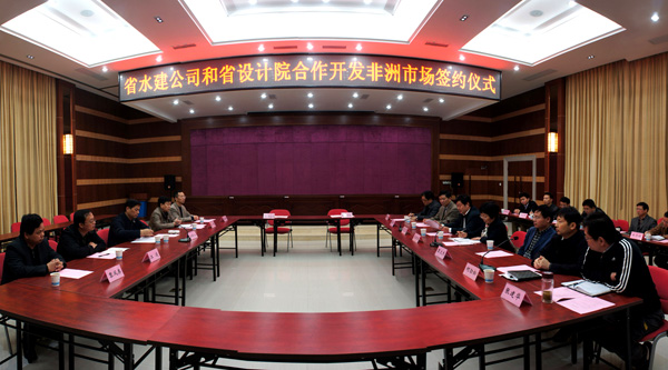 2013年11月13日,我公司與江西省水利規(guī)劃設(shè)計(jì)院合作開(kāi)發(fā)非洲市場(chǎng)暨聯(lián)合成立“江西省水利規(guī)劃設(shè)計(jì)院埃塞俄比亞分院”簽約儀式在省水院會(huì)議中心舉行。江西省水利廳黨委書(shū)記、廳長(zhǎng)孫曉山出席簽約儀式并作重要講話,我公司董事長(zhǎng)兼總經(jīng)理王元旦、省水院院長(zhǎng)孔俐麗分別致辭,并代表雙方簽訂戰(zhàn)略合作協(xié)議。