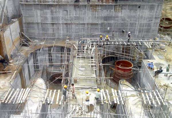 南化二級水電站水輪發(fā)電機組底座進入澆筑環(huán)節(jié)