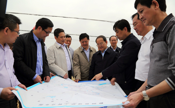 陪同視察的還有省政府秘書長(zhǎng)譚曉林,省水利廳廳長(zhǎng)孫曉山、副廳長(zhǎng)羅小云,上饒市委書記陳俊卿、市長(zhǎng)潘東軍及鄱陽(yáng)、萬(wàn)年縣委縣政府領(lǐng)導(dǎo)等。