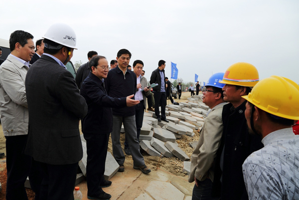 4月15日上午,江西省省委副書記、省長(zhǎng)鹿心社來(lái)到我公司承建的鄱陽(yáng)湖區(qū)二期防洪工程第六個(gè)單項(xiàng)鄱陽(yáng)縣饒河聯(lián)圩除險(xiǎn)加固工程饒河1標(biāo)施工現(xiàn)場(chǎng)進(jìn)行視察調(diào)研。
