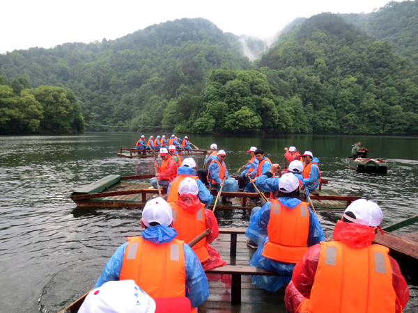 5月4日上午,大家在南昌統(tǒng)一集合,乘車出發(fā)前往龍?jiān)磵{風(fēng)景區(qū)。天空下起了淅淅瀝瀝的小雨,到達(dá)景區(qū)后,雨勢加大,但并沒有阻擋住江西水建青年員工的熱情,大家經(jīng)破冰和分組環(huán)節(jié)后, 60多人分為八組,進(jìn)入高峽明珠雙燕海劃木板船,在湖心展開了一場別開生面的劃船比賽,激蕩的水花在濛濛細(xì)雨中此起彼伏,頗有“百舸爭流”的壯麗場面。隨后,大家興致勃勃地游覽了三星嶺、千福灘、萬壽山和水中大森林等景點(diǎn)。