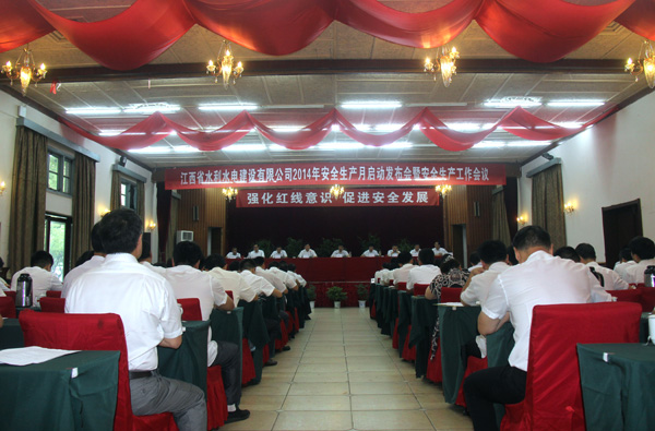 為響應(yīng)江西省水利廳《關(guān)于開展2014年水利安全生產(chǎn)月宣傳活動》精神要求,牢固樹立“以人為本”的科學(xué)發(fā)展觀,2014年6月22日,公司在南昌召開了2014年安全生產(chǎn)月啟動發(fā)布會暨安全生產(chǎn)工作會議。省水利廳黨委書記、廳長孫曉山,副廳長廖瑞釗到會指導(dǎo),公司黨委書記、董事長兼總經(jīng)理王元旦等高層領(lǐng)導(dǎo),公司中層管理人員,各專業(yè)公司、分公司及施工項(xiàng)目部的主要負(fù)責(zé)人、技術(shù)負(fù)責(zé)人、專職安全員共100余人參加了會議。公司黨委副書記王延軍主持會議并宣布安全生產(chǎn)月啟動。