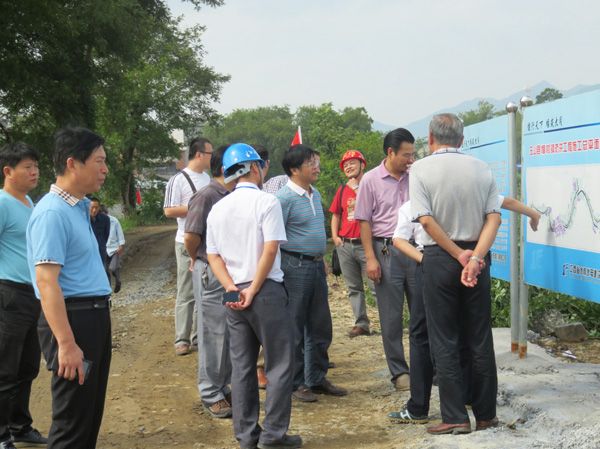 為進(jìn)一步落實8月8日全省水利建設(shè)推進(jìn)會精神,2014年9月21日上午,以水利廳副廳長廖瑞釗為組長的督查組來到我公司承建的上饒市玉山縣樟村鎮(zhèn)防洪工程現(xiàn)場檢查指導(dǎo)工作。督查組一行深入工地全線施工現(xiàn)場,每到一處都詳細(xì)詢問各參建單位情況,了解工程的投資規(guī)模、設(shè)計方案及進(jìn)度、質(zhì)量控制情況。督察組對樟村鎮(zhèn)防洪工程施工質(zhì)量尤其是工程外觀表示非常滿意。在看了工地整齊規(guī)范的五圖一牌及公司形象宣傳欄后,廖瑞釗副廳長對我公司的標(biāo)準(zhǔn)化施工管理給予了高度評價,還不時拍照記錄,并要求玉山縣水利局在全縣其他水利建設(shè)工地參照學(xué)習(xí)并加以推廣。在檢查完工地現(xiàn)場后,督察組在樟村鎮(zhèn)政府就防洪工程設(shè)計、施工、及鄉(xiāng)鎮(zhèn)規(guī)劃召開了座談會。