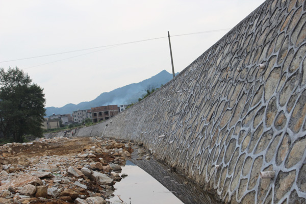 完成的防洪墻(漿砌石貼面埋石砼防洪墻)