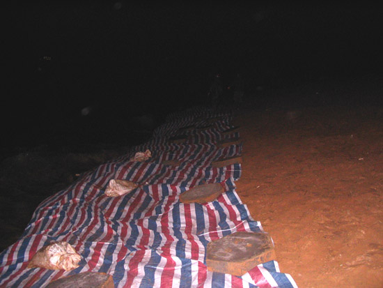 剛鋪設(shè)好的防浪彩條布