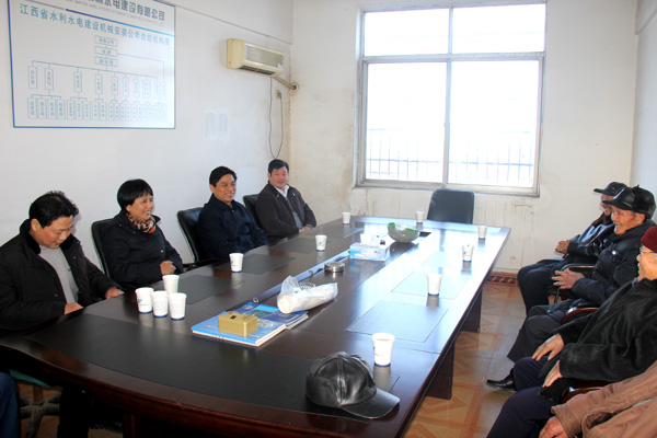 1月15日下午,省水利廳廳長孫曉山率領(lǐng)廳副巡視員周江紅、廳辦公室主任王純、廳人事處處長戴金華和離退休干部處處長張魯江等前往我公司南昌縣職工生活基地,看望慰問離退休老同志。公司董事長兼總經(jīng)理王元旦陪同參加了慰問活動。