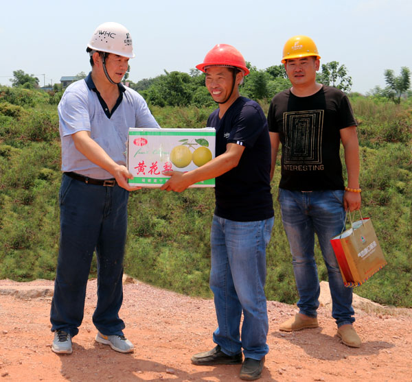 頂著炎炎烈日,王元旦董事長一行先后來到盧前隧洞、北樓隧洞、曾家渡槽、渡王家渡槽、會源隧洞等施工現(xiàn)場進行檢查,親切看望慰問現(xiàn)場員工,并送上了防暑降溫慰問品。每到一處,他總是親切詢問員工的工作與生活情況,并叮囑項目部要合理安排工作時間,保障防暑降溫物品的供給,為員工提供安全、清涼的工作與生活環(huán)境。