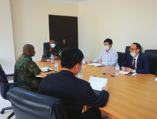 張周平一行會見了軍事學院項目業(yè)主--盧旺達軍事學院司令。雙方就疫情期間項目的施工情況進行了充分的交流,氣氛熱烈融洽。雙方非常珍惜和重視此次合作,表示會全力支持推動項目進展,并期待兩個團隊在日后工作中能夠繼續(xù)保持積極有效的溝通,務實地解決施工難點,盡早完成預期建筑施工目標。
