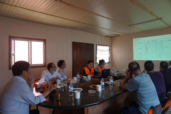 隨后,張周平具體查看了軍事學院項目的整體建設情況,詳細詢問了員工生活生產(chǎn)物資等后勤保障工作。座談會上,張周平首先聽取了項目負責人黃飛翔對項目生產(chǎn)經(jīng)營的工作匯報,詳細了解了項目當前進展、面臨的困難、采取的措施和下一步工作計劃。張周平對項目部在疫情期間積極作為、勇保履約的努力表現(xiàn)給予了充分肯定,并對后期工作開展提出了明確的要求。他強調,一是要嚴格做好疫情防控以及其他疾病或意外事故的預防,時刻將全體員工的身體健康和生命安全放在首位;二是要嚴把質量關,打造精品優(yōu)質工程,增強公司核心競爭力;三是要推動項目高質高效履約,樹立良好的公司形象,為公司進一步拓展當?shù)厥袌龊粚嵒A。