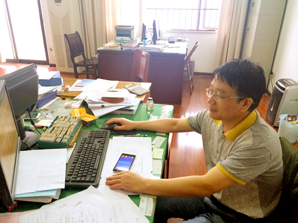 走進財務部的辦公室,周家煌的辦公桌上的擺設一目了然:桌面整潔干凈,桌上的文件排放的整齊有序。左上角壘起來的倆堆書籍,其一是《財務會計》、《中國稅務》等財務專業(yè)的雜志;另一堆書籍置于頂部的是《計算機財務管理:財務建模方法與技術》,往下的是諸如《計算機辦公軟件應用》、《信息時代的財務創(chuàng)新》等。