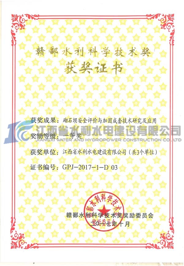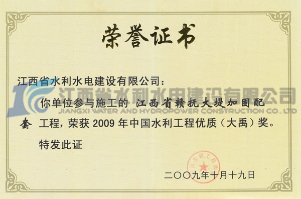 金杯銀杯不如老百姓的口碑。十年來(lái),公司始終以項(xiàng)目管理為核心,以過(guò)程控制為主線,以質(zhì)量安全為重點(diǎn),以品牌形象為抓手,努力鑄造精品工程,滿足社會(huì)需要,實(shí)現(xiàn)社會(huì)價(jià)值。十年來(lái),公司共有  12項(xiàng)QC成果,獲省部級(jí)獎(jiǎng)項(xiàng);有 7項(xiàng)工法獲得省部級(jí)工法,2項(xiàng)科研項(xiàng)目研究獲贛鄱水利科技一等獎(jiǎng);填補(bǔ)了歷史空白,有力的提升了企業(yè)的核心競(jìng)爭(zhēng)力。十年來(lái),公司承建的贛撫大堤加固配套工程和長(zhǎng)江大堤防洪工程榮獲“大禹獎(jiǎng)”,數(shù)十個(gè)項(xiàng)目榮獲全省水利優(yōu)良工程獎(jiǎng),5個(gè)項(xiàng)目被水利部評(píng)為文明工地,榮獲水利部首一批安全生產(chǎn)標(biāo)準(zhǔn)化施工企業(yè)和信用等級(jí)AAA企業(yè)。