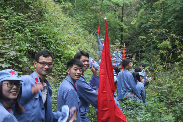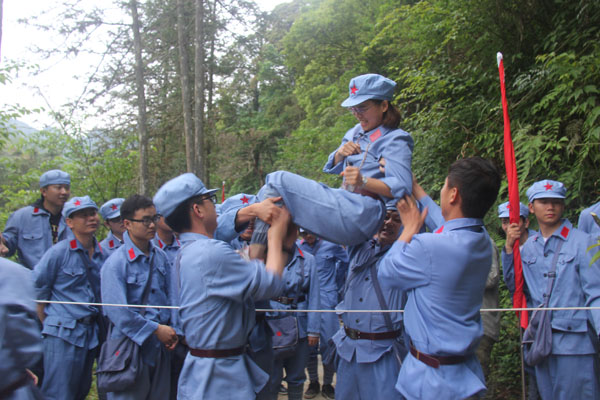 抵達井岡山后,全體人員立刻進入三灣隊伍整編環(huán)節(jié),推薦隊長、政委和旗手,設(shè)計隊名、口號和LOGO。很快“飛龍隊”、“戰(zhàn)鷹隊” 等名字紛紛閃亮登場?!褒堈魅f里,所向披靡”、“ 群狼行千里,星火可燎原”等口號一次又一次迎來全場的陣陣歡呼。隨后進行了“穿越叢林、突破封鎖線、匍匐前進、火線救援”4個比賽項目,這些比賽項目,增強了大家的團隊意識,每名成員充分認識到了團結(jié)協(xié)作、友愛互助的重要性,使大家在比賽中受到啟發(fā)、受到鼓舞、更使大家得到了鍛煉,經(jīng)受了考驗。