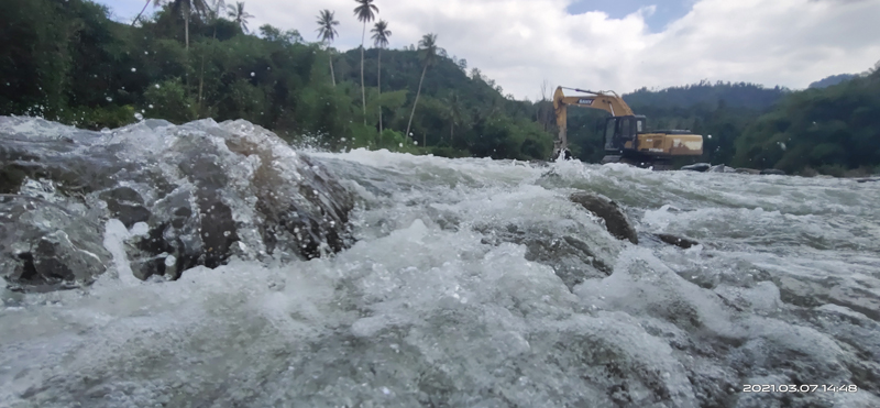 文字說明;該照片是在伯恩河中用手機(jī)拍攝,是印尼疫情復(fù)工后開辟新施工道路時的場景。在奔騰的洪流中激流拍石,浪花飛濺,挖機(jī)迎難而上,象征著公司堅韌不屈的品格、水建人大無畏的工作熱情。對岸的滿山綠樹在藍(lán)天白云下,勾勒出一幅壯麗的畫面,預(yù)示著伯恩電站的美好未來,高高的椰子樹,象征著集團(tuán)公司輝煌的明天!