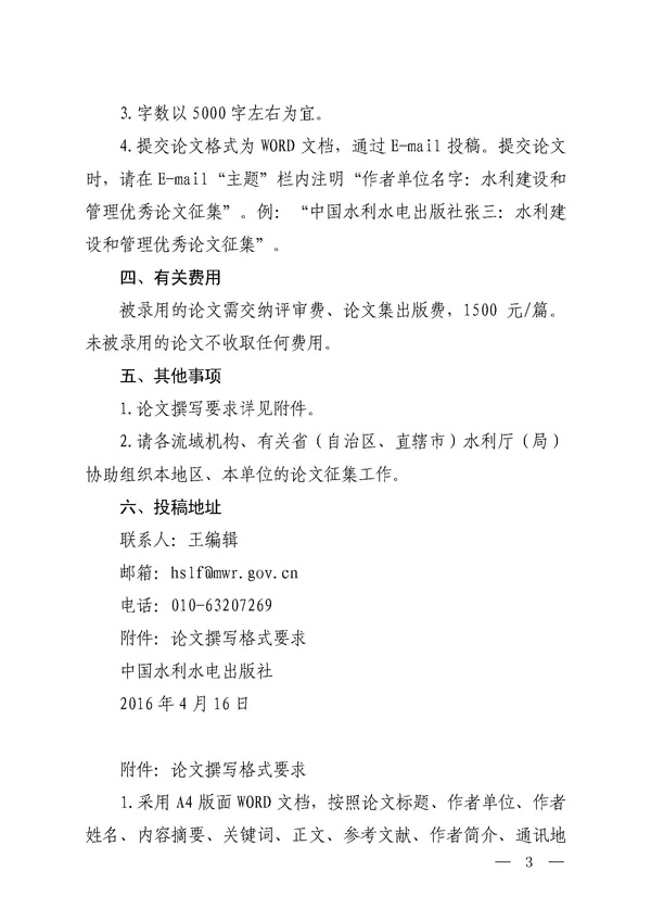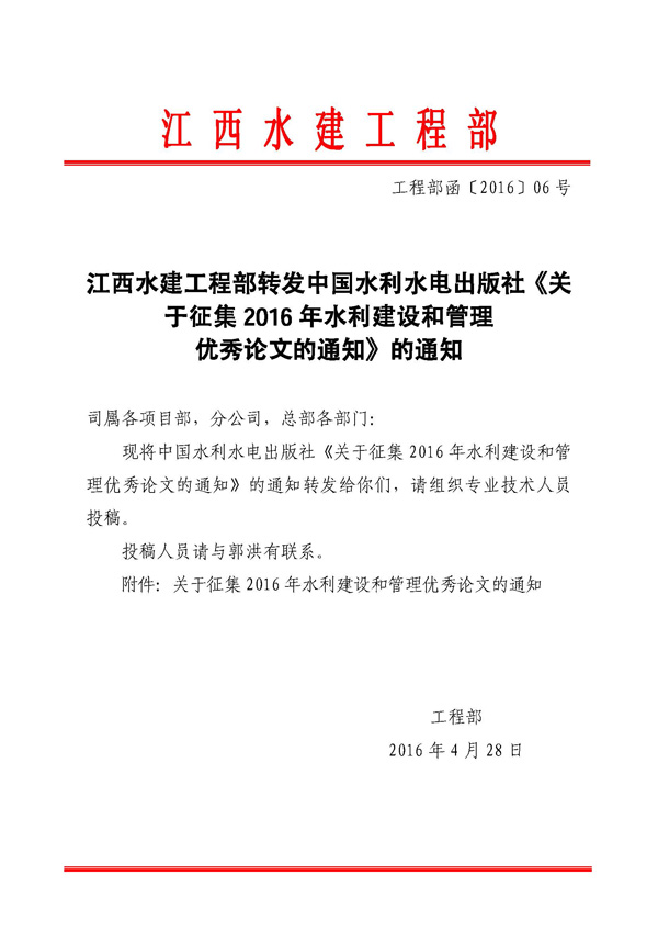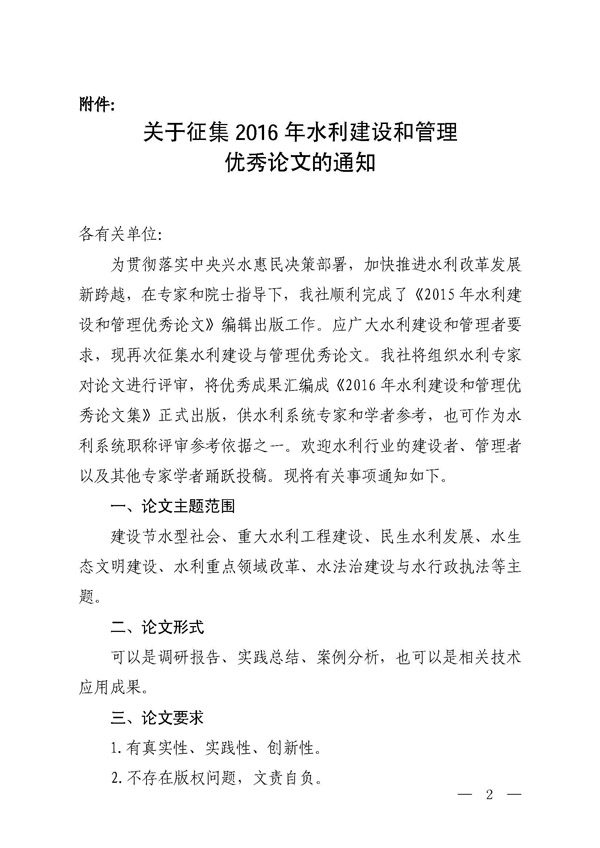 轉(zhuǎn)發(fā)征集2016年水利建設和管理優(yōu)秀論文的通知