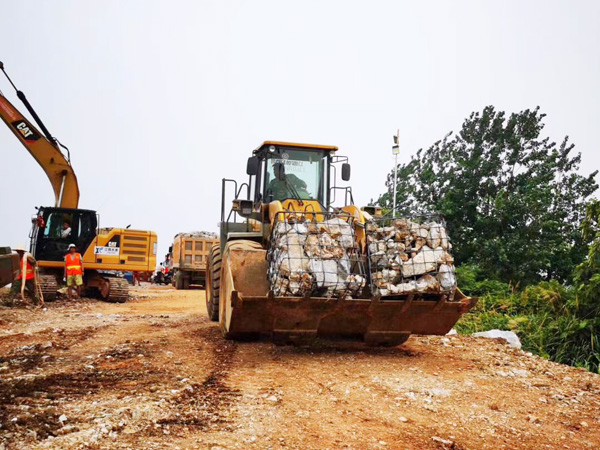 7月14日14時(shí),封堵作業(yè)正式啟動(dòng),南北兩岸同時(shí)進(jìn)占施工。然而,困難層出不窮:道路不平,存在積水,影響車輛通行;一線搶險(xiǎn)人員的生活保障還不夠完善,吃住條件艱苦,防雨防曬防蚊設(shè)施簡(jiǎn)陋,無(wú)便攜照明設(shè)施;砂石骨料耗量巨大,但存在配額限制,獲取來(lái)源較少。但現(xiàn)場(chǎng)人員攻堅(jiān)克難,積極與政府、當(dāng)?shù)丶捌h(yuǎn)廠商溝通,解決了人員基本需求和石料問(wèn)題,并在當(dāng)日順利鋪石20米,邁上堅(jiān)實(shí)的第一步。