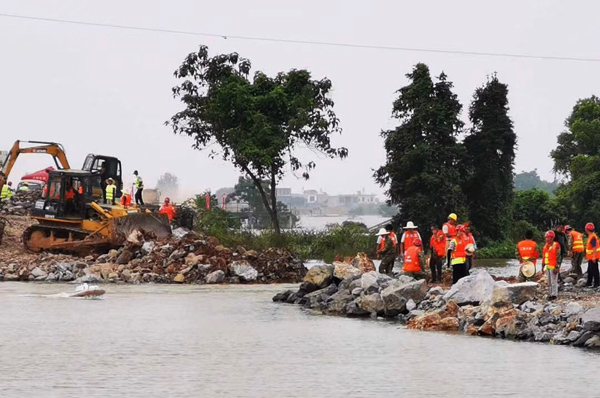 整個(gè)封堵工作共動(dòng)用水建公司400余名施工人員;調(diào)配挖機(jī)12臺(tái)、裝載機(jī)5臺(tái)、推土機(jī)2臺(tái)、運(yùn)輸車216臺(tái);調(diào)配塊石約3萬(wàn)立方米、卵石約2500立方米、粘土約9000立方米、1立方米鋼筋籠260多個(gè)、3噸重混凝土塊160多塊。