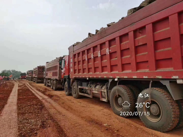 7月15日凌晨,貨車連夜運(yùn)送石料入場(chǎng),現(xiàn)場(chǎng)材料調(diào)度人員徹夜不休,僅借助貨車大燈照明,順利完成調(diào)度工作。當(dāng)日,決口成功封堵70米。